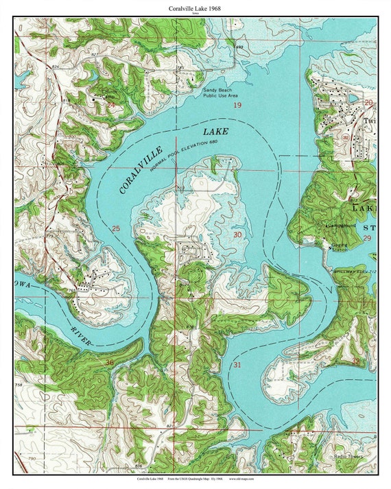 Coralville Lake 1968 Old Map Topo Custom Composite USGS Reprint