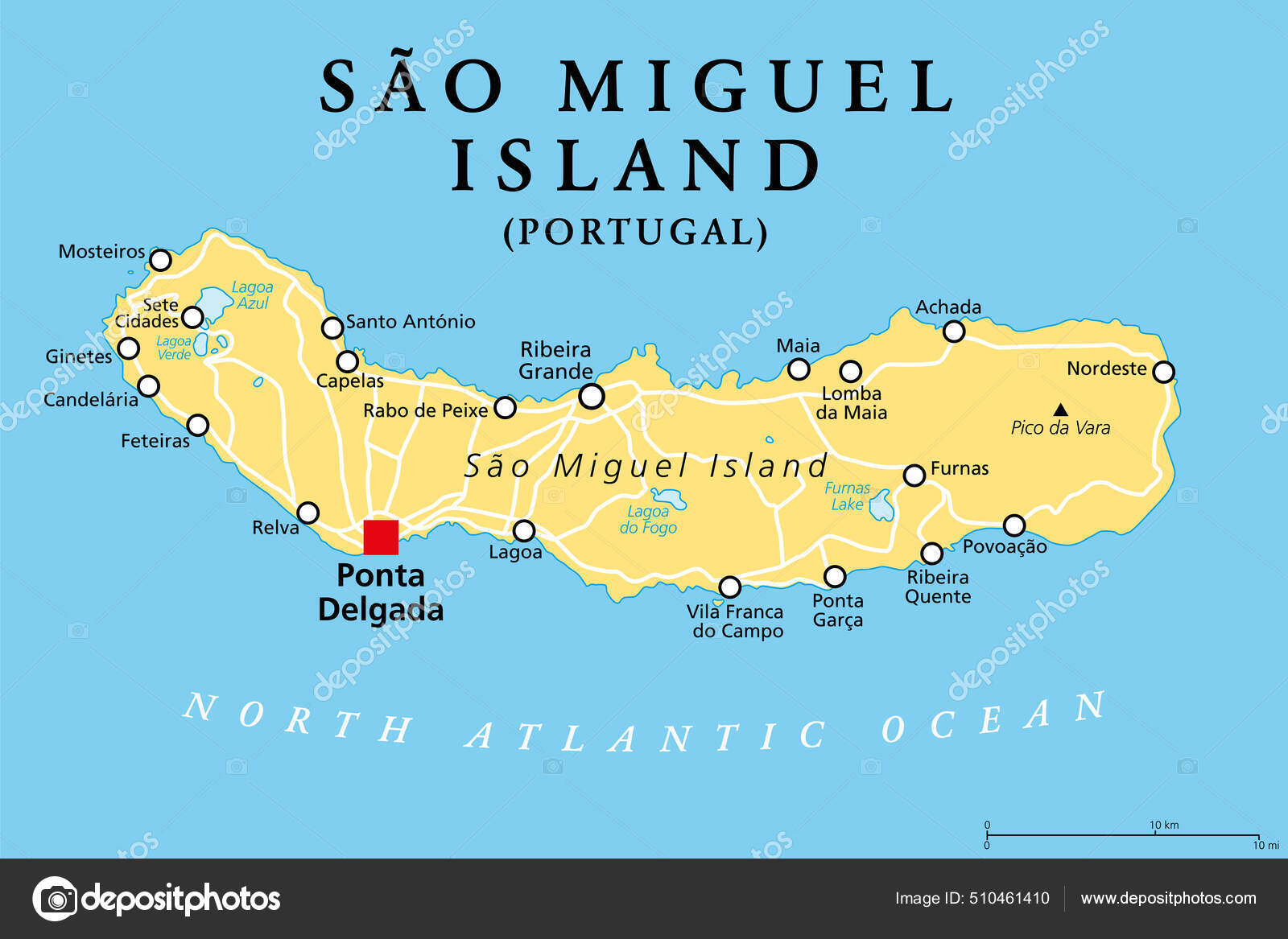 Sao Miguel Island Azores Portugal Political Map Capital Ponta