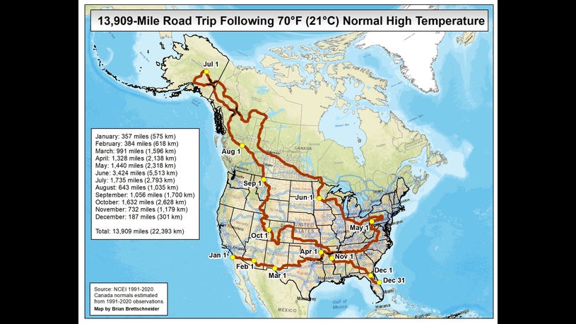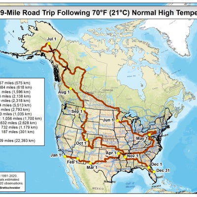 Road Trip Map Shows Travelers How To Follow 70 Degree Temps