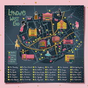 Illustrated map of West End Theatres, London Fiona Horan: Artist
