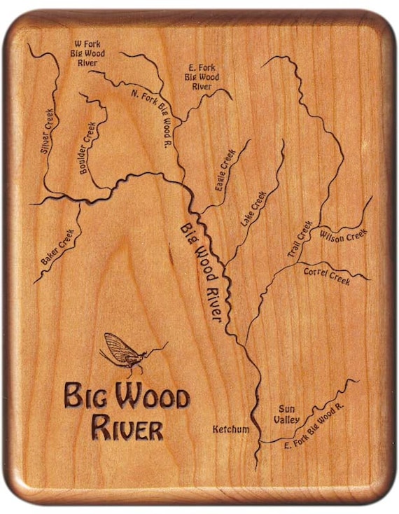 Big Wood River Map Fly Box Handcrafted, Custom Designed, Laser